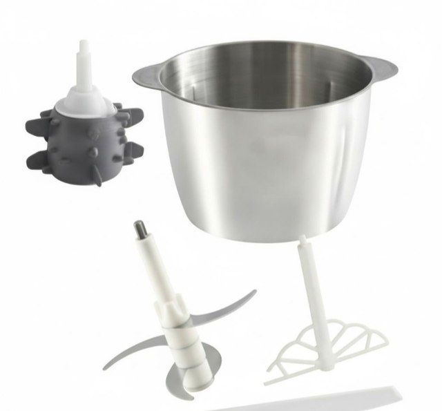 کاسه شیشهای، کاسه استیل، پایه سیر پوستکن، همزن تخت، لیسک پلاستیکی